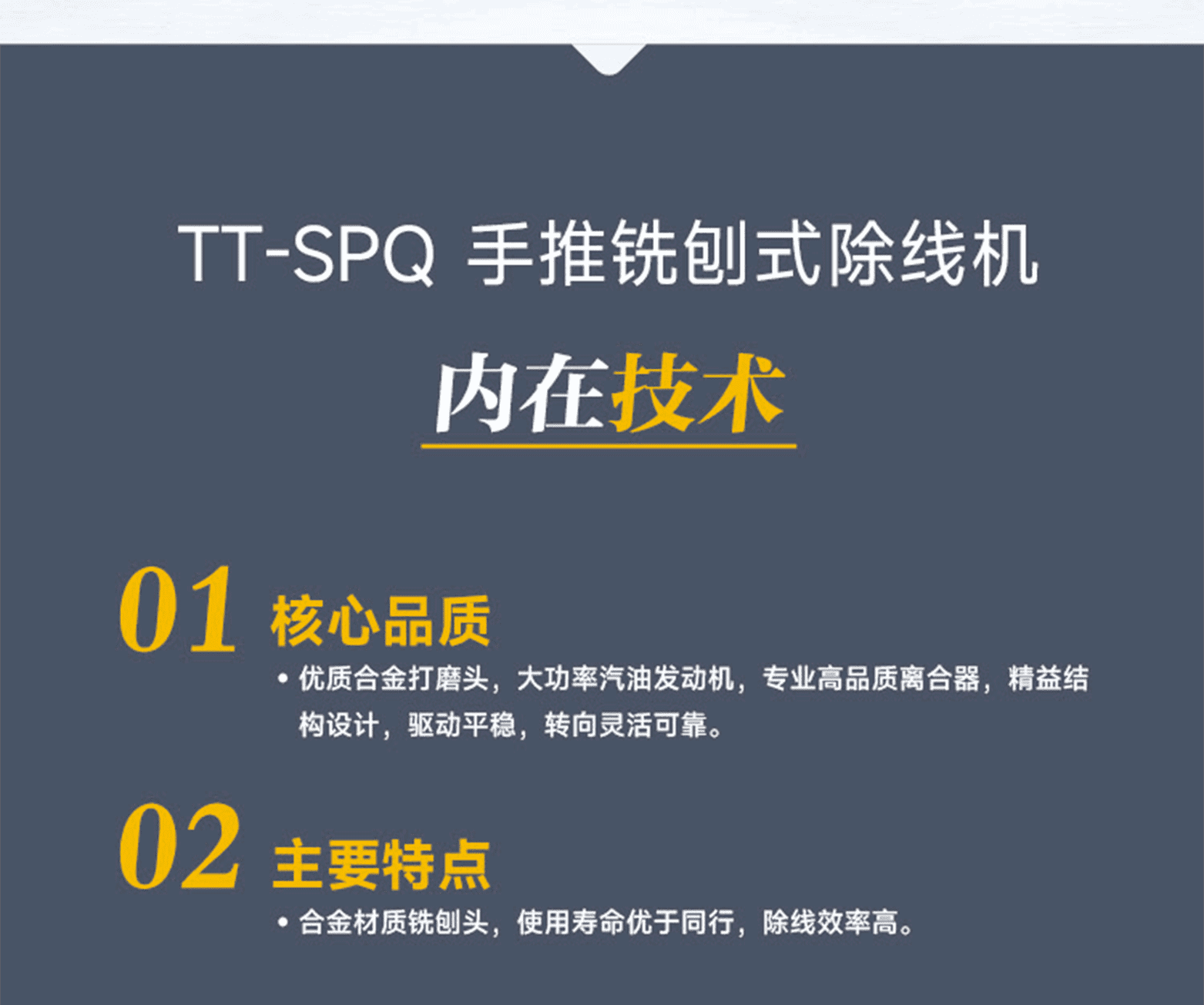 核心品質:優質合金打磨頭,大功率汽油發動機,專業高品質離合器,精益結構設計,驅動平穩,轉向靈活可靠。主要特點:合金材質銑刨頭,使用壽命優于同行,除線效率高。